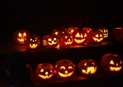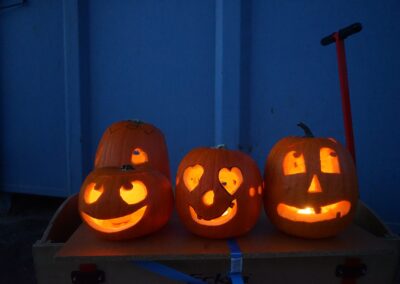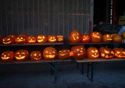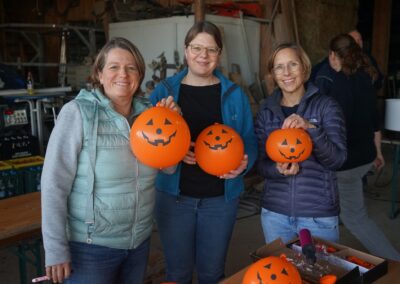 Das Helferteam um die Organisatorinnen vom Kinderprogrammteam – Steffi Wahr und Veronika Zeiträg –  verkauften derweil allerlei Getränke, Glühwein und Punsch sowie Leberkäswecken und selbstgebackene Muffins. Bei einbrechender Dunkelheit kamen große und kleine Kürbisgeister auf einen Bollerwagen und wurden mit Kerzen bestückt, damit sie auch richtig gruselig leuchten konnten.