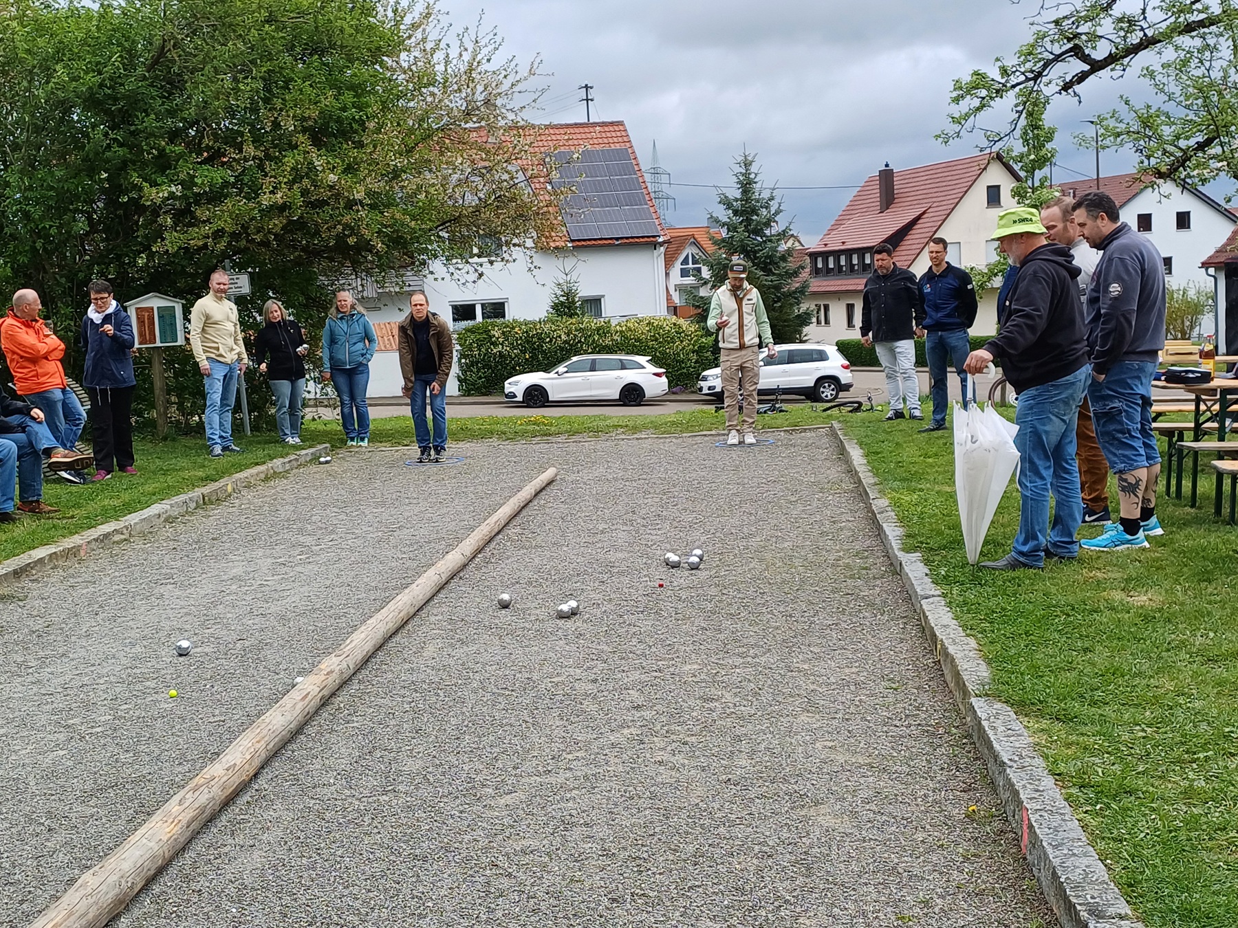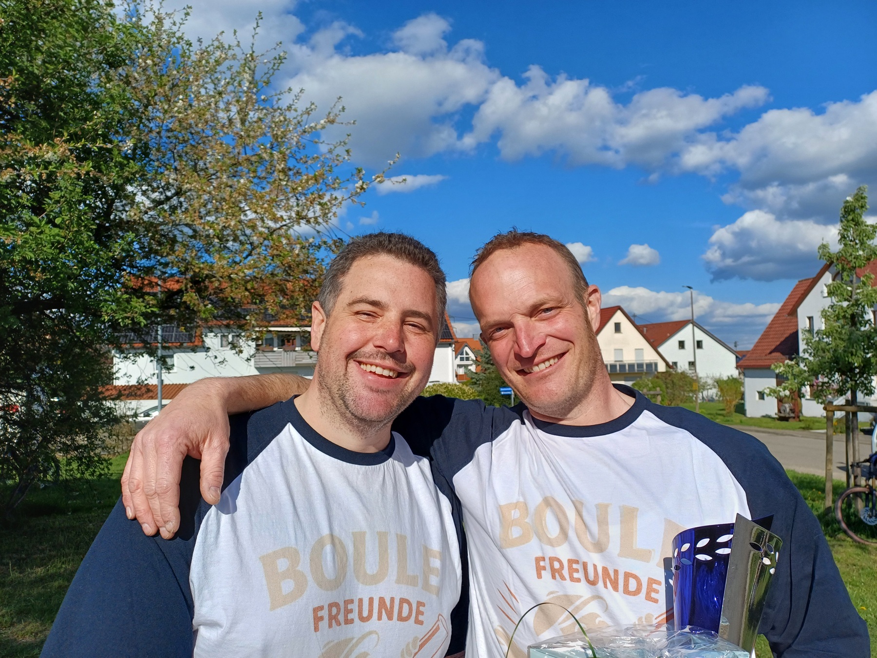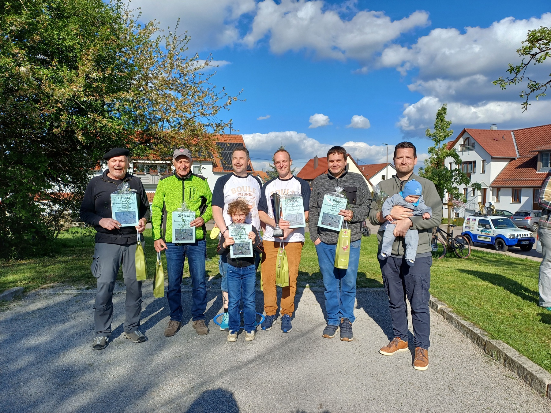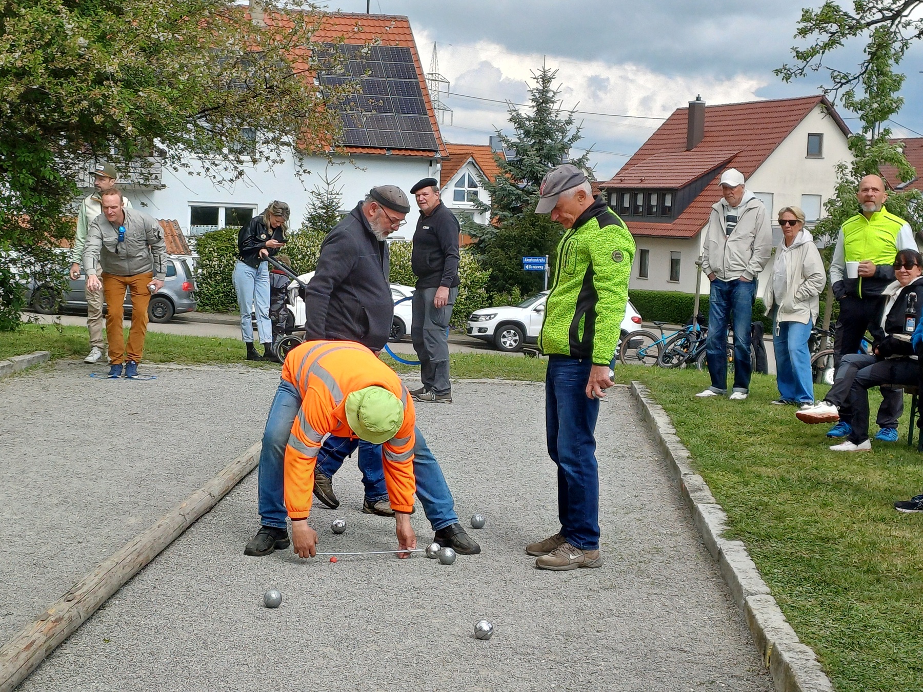 15 Amateurteams gingen beim Bouleturnier des Kulturvereins Krummhardt wieder an den Start. Die kleine aber feine Veranstaltung ist mittlerweile aus dem Veranstaltungskalender des Vereins nicht mehr wegzudenken, birgt es nicht nur viel Spaß, Spannung und gute Unterhaltung durch die Spiele, sondern auch ein entspanntes Zusammensein bei der Hocketse an der Boulebahn im Ortszentrum. Jürgen Zeiträg, der erste Vorstand des Vereins, begrüßte die motivierten Teams, und nach der Auslosung konnte es mit der Vorrunde losgehen. Gespielt wurde im 15-Minuten-Modus bzw. wer zuerst 9 Punkte erzielt. Die Vorrunde mit insgesamt 30 Spielpaarungen ging nach etwa vier Stunden und vielen spannenden Begegnungen zu Ende und die sechs Mannschaften für die Zwischenrunde standen fest. In der Gruppe A qualifizierten sich mit je drei Siegen die Teams „Die 54er“ (Manfred Seifried / Horst Schäfer) und „Kugelblitze“ (Simon Schäfer / Moritz Dung). „Rauschkugla“ (Uwe Spengler / Michael Weber) fuhren in der Gruppe B ebenso wie „Die mit `m Bart“ (Hans Hallwachs / Stefan „Ursus“ Maier) drei Siege ein und kamen somit in die Zwischenrunde. Dem Team „Lahme Enten“ (Dieter Unrath / Hubert Kiesel) aus Gruppe C reichten zwei Siege und ein Unentschieden, um als Gruppensieger weiterzukommen. Gruppenzweiter wurde „Balls of Steel“ (Michael Hallwachs / Markus Görisch). In Gruppe 1 der Zwischenrunde, die ebenfalls auf 9 Punkte bzw. auf 15-Minuten-Zeit gespielt wurde, verbuchte das Team „Rauschkugla“ zwei klare Siege und sicherten sich den Einzug ins Finale. Mit einem Sieg und einer Niederlage landete das Team „Kugelblitze“ auf Platz 2. In der Gruppe 2 lief es analog der Gruppe 1. 2 Siege des Teams „Die 54er“ katapultierten diese ins Endspiel. Ein Sieg reichte Hans Hallwachs und Ursus Maier („Die mit `m Bart“), um ins „kleine Finale“ – sprich Spiel um Platz 3 – einzuziehen. Beim Spiel um Platz 3 wurde auf dem gesamten Platz und bis 13 Siegpunkte gespielt, ohne Zeitlimit. Den Vorsprung der „Kugelblitze“ konnten „Die mit `m Bart“ trotz zahlreicher guter Würfe am Ende nicht mehr einholen und so sicherten sich Simon Schäfer und Moritz Dung den Platz auf dem Siegerpodest. In der Finalpaarung ging es sehr spannend zu. Immer wieder kamen Manfred Seifried und Horst Schäfer dem Team „Rauschkugla“ näher, doch am Ende reichte es mit 13:10 für Uwe Spengler und Michael Weber zum Sieg. Alle Siegerteams erhielten eine Urkunde mit Geschenk und präsentierten sich am Ende fröhlich der Fotografin für ein Siegerfoto. Ein herzliches Dankeschön gilt allen fleißigen Helfern rund um das Turnier, allen Kuchenbäcker/innen und dem Turnierleiter Steffen Wahr.