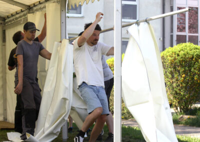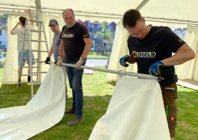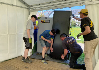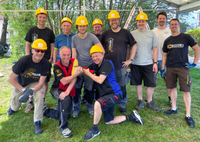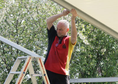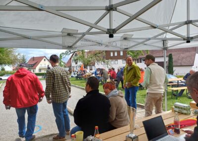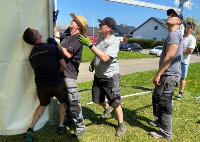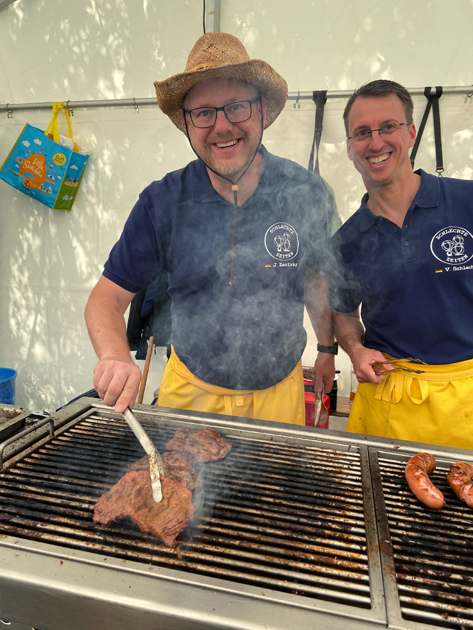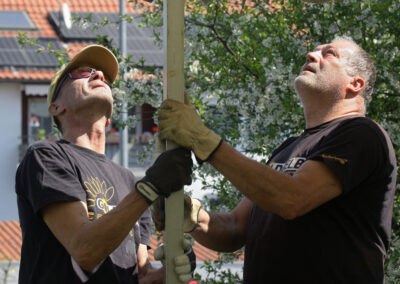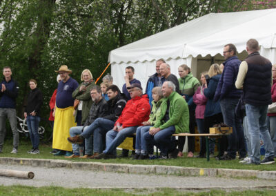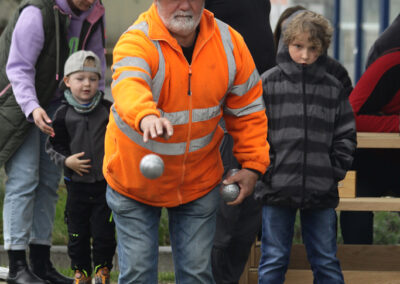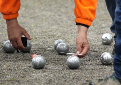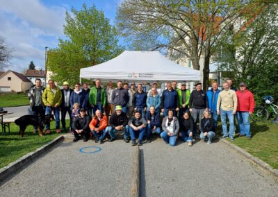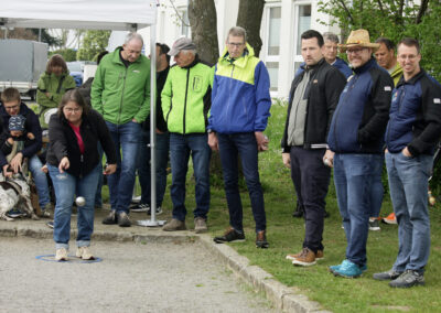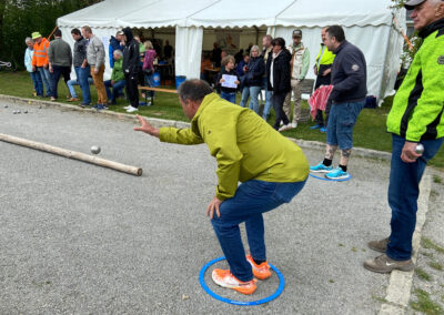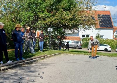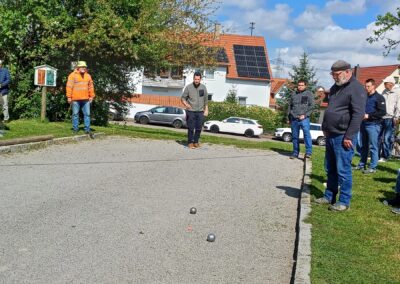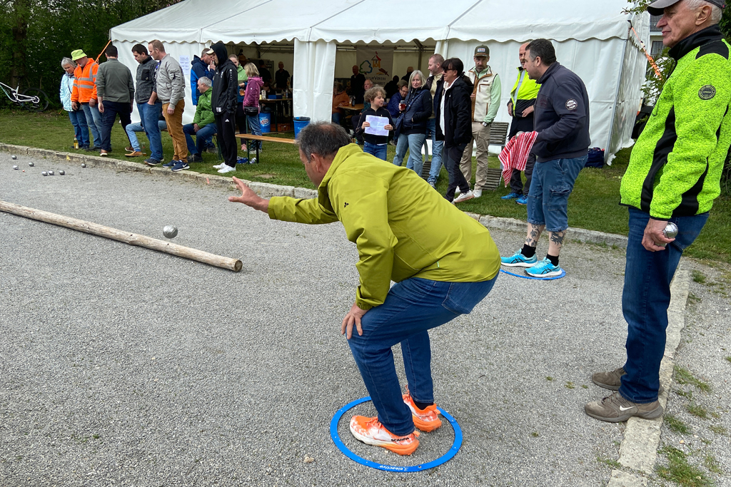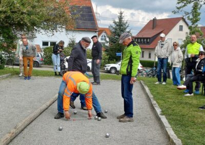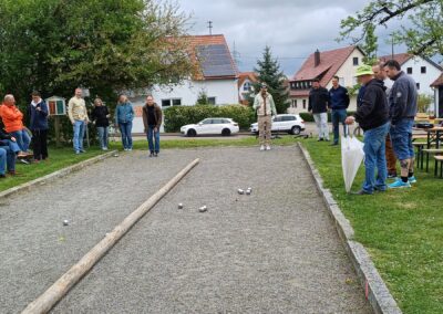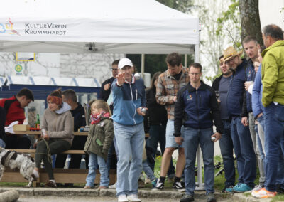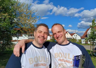 15 Amateurteams gingen beim Bouleturnier des Kulturvereins Krummhardt wieder an den Start. Die kleine aber feine Veranstaltung ist mittlerweile aus dem Veranstaltungskalender des Vereins nicht mehr wegzudenken, birgt es nicht nur viel Spaß, Spannung und gute Unterhaltung durch die Spiele, sondern auch ein entspanntes Zusammensein bei der Hocketse an der Boulebahn im Ortszentrum. Jürgen Zeiträg, der erste Vorstand des Vereins, begrüßte die motivierten Teams, und nach der Auslosung konnte es mit der Vorrunde losgehen. Gespielt wurde im 15-Minuten-Modus bzw. wer zuerst 9 Punkte erzielt. Die Vorrunde mit insgesamt 30 Spielpaarungen ging nach etwa vier Stunden und vielen spannenden Begegnungen zu Ende und die sechs Mannschaften für die Zwischenrunde standen fest. In der Gruppe A qualifizierten sich mit je drei Siegen die Teams „Die 54er“ (Manfred Seifried / Horst Schäfer) und „Kugelblitze“ (Simon Schäfer / Moritz Dung). „Rauschkugla“ (Uwe Spengler / Michael Weber) fuhren in der Gruppe B ebenso wie „Die mit `m Bart“ (Hans Hallwachs / Stefan „Ursus“ Maier) drei Siege ein und kamen somit in die Zwischenrunde. Dem Team „Lahme Enten“ (Dieter Unrath / Hubert Kiesel) aus Gruppe C reichten zwei Siege und ein Unentschieden, um als Gruppensieger weiterzukommen. Gruppenzweiter wurde „Balls of Steel“ (Michael Hallwachs / Markus Görisch). In Gruppe 1 der Zwischenrunde, die ebenfalls auf 9 Punkte bzw. auf 15-Minuten-Zeit gespielt wurde, verbuchte das Team „Rauschkugla“ zwei klare Siege und sicherten sich den Einzug ins Finale. Mit einem Sieg und einer Niederlage landete das Team „Kugelblitze“ auf Platz 2. In der Gruppe 2 lief es analog der Gruppe 1. 2 Siege des Teams „Die 54er“ katapultierten diese ins Endspiel. Ein Sieg reichte Hans Hallwachs und Ursus Maier („Die mit `m Bart“), um ins „kleine Finale“ – sprich Spiel um Platz 3 – einzuziehen. Beim Spiel um Platz 3 wurde auf dem gesamten Platz und bis 13 Siegpunkte gespielt, ohne Zeitlimit. Den Vorsprung der „Kugelblitze“ konnten „Die mit `m Bart“ trotz zahlreicher guter Würfe am Ende nicht mehr einholen und so sicherten sich Simon Schäfer und Moritz Dung den Platz auf dem Siegerpodest. In der Finalpaarung ging es sehr spannend zu. Immer wieder kamen Manfred Seifried und Horst Schäfer dem Team „Rauschkugla“ näher, doch am Ende reichte es mit 13:10 für Uwe Spengler und Michael Weber zum Sieg. Alle Siegerteams erhielten eine Urkunde mit Geschenk und präsentierten sich am Ende fröhlich der Fotografin für ein Siegerfoto. Ein herzliches Dankeschön gilt allen fleißigen Helfern rund um das Turnier, allen Kuchenbäcker/innen und dem Turnierleiter Steffen Wahr.